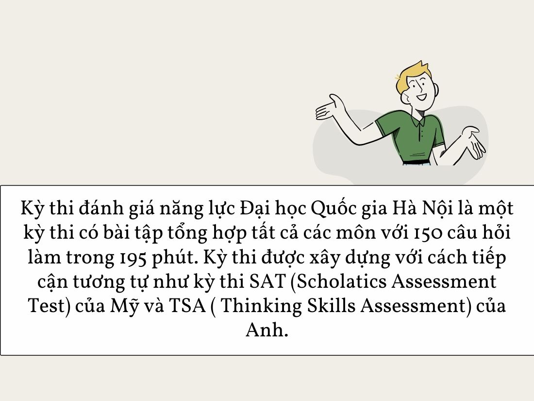 Những thông tin mới đây mà chúng tôi cập nhật được về kỳ thi Đánh giá năng lực Đại học Quốc gia Hà Nội như sau: