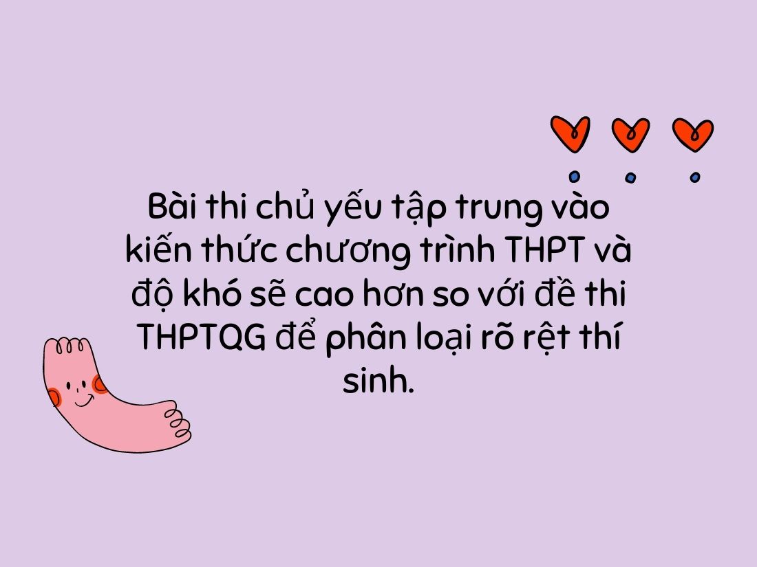 - Bài thi sẽ được tổ chức ngay sau kỳ thi tốt nghiệp THPTQG với 2 cấu trúc là trắc nghiệm và tự luận.