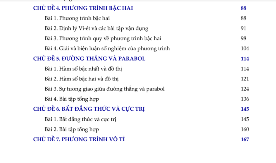 - Bài toán về đường thẳng, hàm số bậc hai, phương trình bậc hai, đồ thị, hệ thức Vi-ét và ứng dụng. Phần này có một ý phân hóa ở mức độ vận dụng, thường chiếm khoảng 0,5 điểm