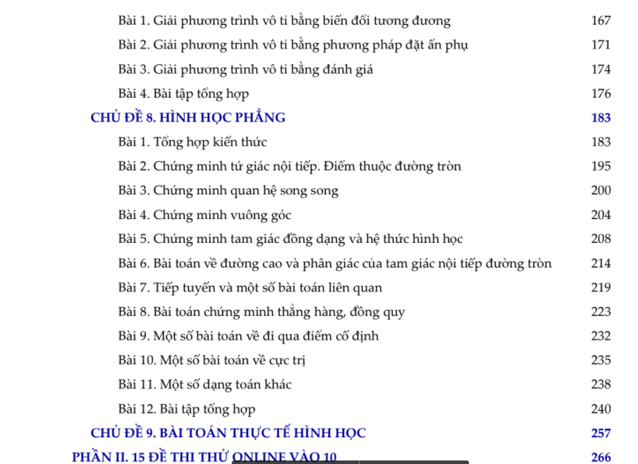 - Các bài có liên quan đến hình học: Ứng dụng thực tế của hệ thức lượng; hình học không gian...