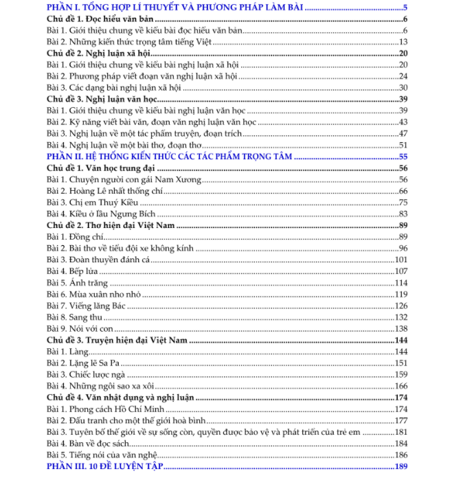 - Phần 1: Tổng hợp lý thuyết và phương pháp làm bài đọc hiểu, NLXH, NLVH