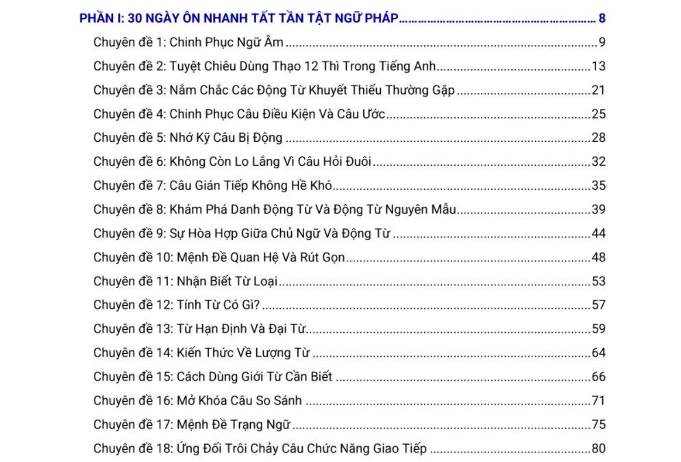 - Phần 1: 30 ngày ôn nhanh tất tần tật ngữ pháp