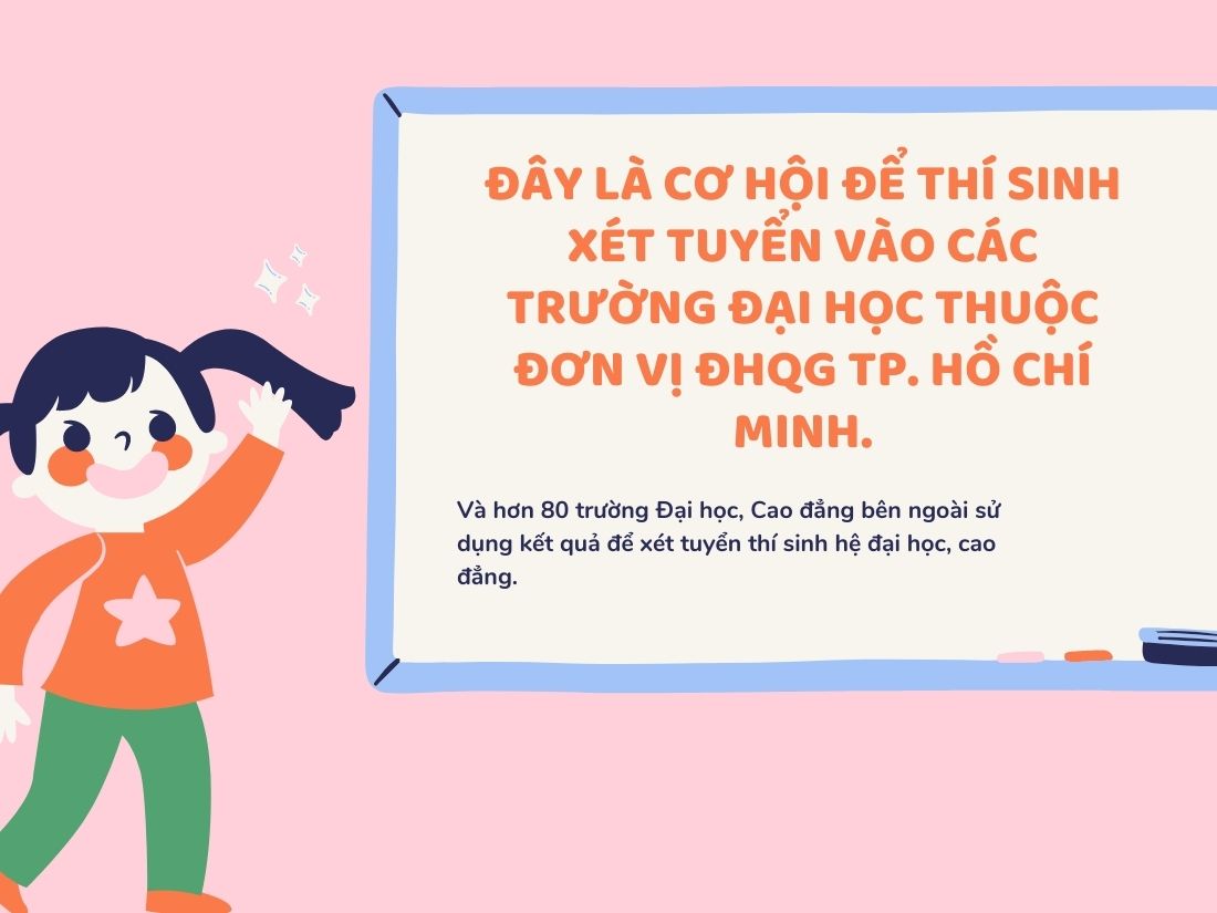 - Đây là cơ hội để thí sinh xét tuyển vào các trường Đại học thuộc đơn vị ĐHQG TP. Hồ Chí Minh.