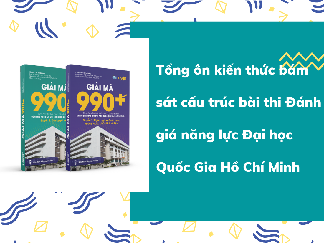 Đầu tiên chắc chắn phải kể đến Sách "Giải mã 990+" là đầu sách tuy chỉ mới ra từ đầu tháng 02/2022 thôi nhưng đây là cuốn sách duy nhất trên thị trường Tổng hợp lý thuyết 8 môn học của 3 lớp 10, 11, 12. Sách được chia theo cấu trúc của đề thi Đánh Giá năng lực Hồ Chí Minh hướng dẫn học sinh phương pháp làm bài có bộ đề thi thử online bám sát cấu trúc đề thi. Đặc biệt cuốn sách còn dạy các em kỹ năng tư duy logic làm phần Toán học, tư duy logic phân tích số liệu.