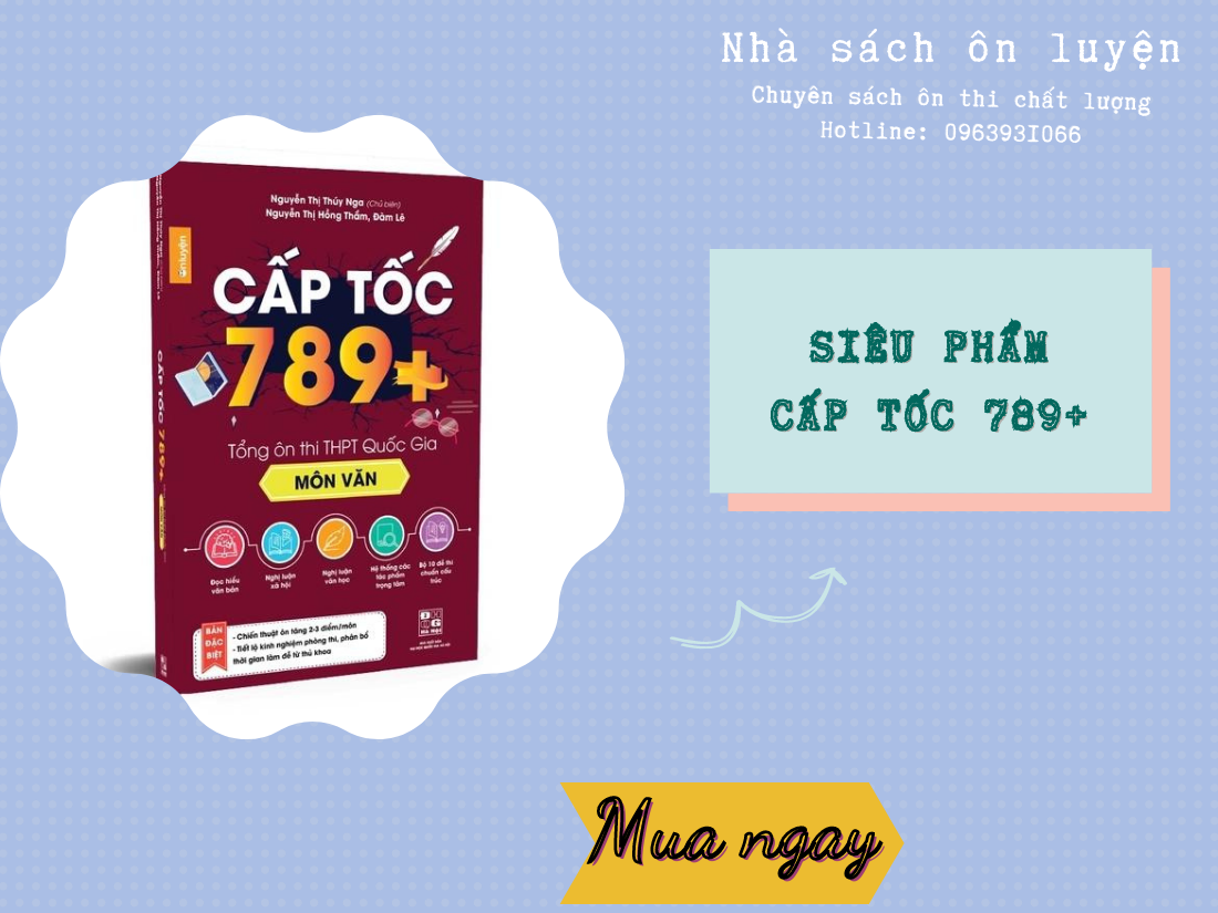Ngữ Văn hiện nay vẫn là môn học suy nhất thi dưới hình thức tự luận. Mỗi môn học sẽ có những đặc thù riêng của nó đúng không? Cấu trúc đề thi môn Ngữ Văn gồm có 2 phần là đọc hiểu và làm văn. Dựa theo cấu trúc đó các thầy cô của Nhà Sách Ôn Luyện đã cho ra cuốn sách cấp tốc 789+ tổng ôn thi THPT Quốc Gia môn Văn. Cuốn sách sẽ chia thành những mốc điểm quan trọng 7+, 8+, 9+ để tổng ôn cho học sinh. Cuốn sách có tổng hợp kiến thức côt lõi, tác giả, phân tích tác phẩm, phương pháp làm bài phần văn, thơ và nghị luận xã hội cùng bộ đề luyện tập được giải chi tiết và đầy đủ giúp các em nắm bắt được các ý chính chắc chắn cần có trong đề thi để ăn điểm.