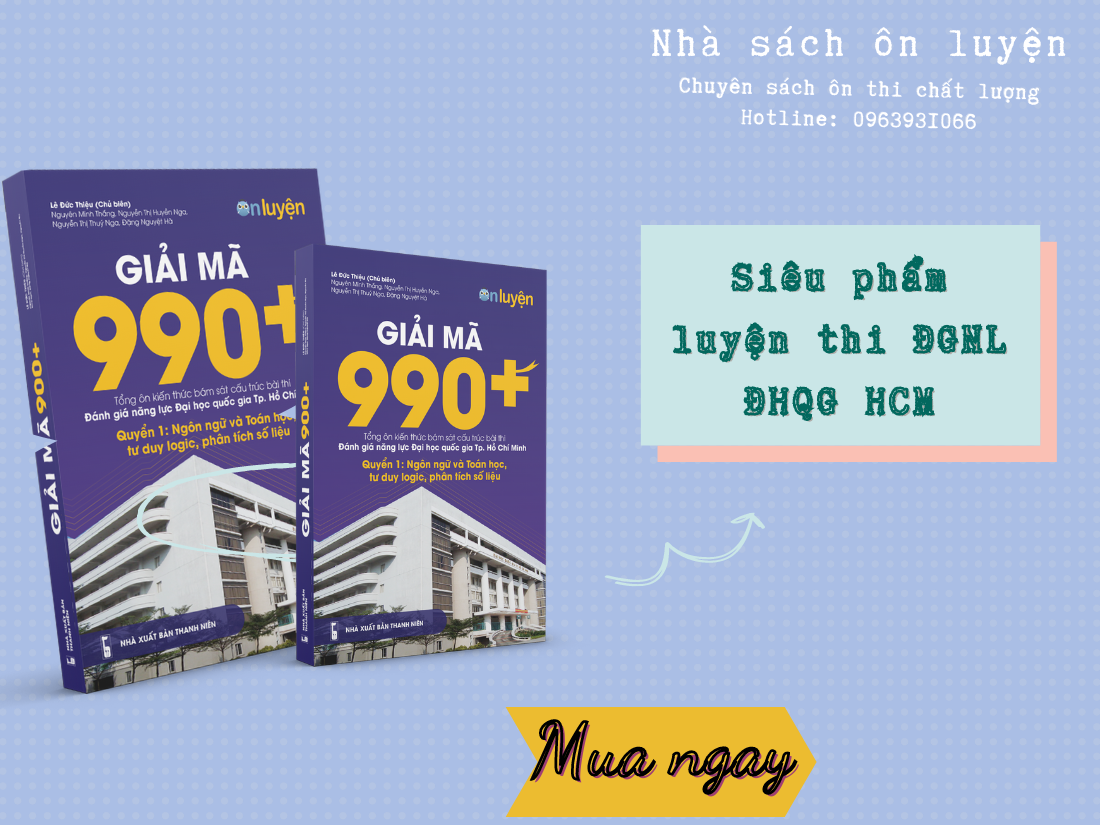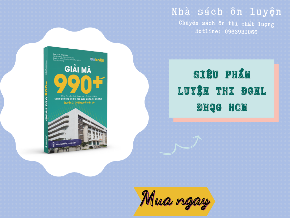 Giải mã 990+ cuốn sách với độ dày gần 700 trang sẽ giúp các bạn tổng ôn kiến thức bám sát cấu trúc bài thi Đánh giá năng lực Đại học Quốc Gia Thành phố Hồ Chí Minh. Sách gồm 2 cuốn: