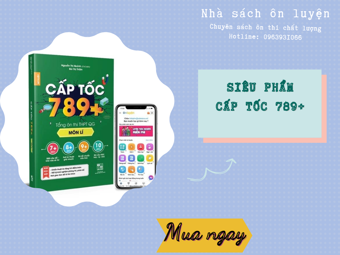 Vật lý là môn học chú trọng chủ yếu đến công thức do vậy để đạt được điểm cao không quá khó như môn Toán và Hóa. Muốn vậy các em cần có kỹ năng suy luận và phân tích đề bài thật tốt để không bỏ phí 7, 8, 9 điểm nhé. Học cùng sách cấp tốc 789+ tổng ôn thi THPT Quốc Gia môn Lí sẽ giúp các em làm quen với các câu hỏi thường xuyên xuất hiện trong đề thi, nắm bắt được công thức giải nhanh và các mẹo làm bài tập từ dễ đến khó. Vậy cuốn sách này có những gì: Tổng hợp toàn bộ công thức giải nhanh nhất cho các chuyên đề (dao động cơ, sóng cơ sóng âm, dòng điện xoay chiều, dao động và sóng điện từ, sóng ánh sáng, lượng tử ánh sáng, vật lý hạt nhân, điện tích điện trường, dòng điện không đổi, từ trường, khúc xạ ánh sáng, dụng cụ quang học), bộ câu hỏi nâng cao nhắm mục tiêu 7 điểm, 8 điểm, 9 điểm và hướng dẫn giải chi tiết, bộ câu hỏi vận dụng cao chinh phục 9, 10 điểm
